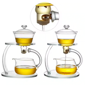 Tetera de Borosilicato (Pyrex) de Alta Resistencia con filtro y balin de Acero Inoxidable, mecanismo semiautomatico (Incluye 2 Feel Good Tea de regalia)